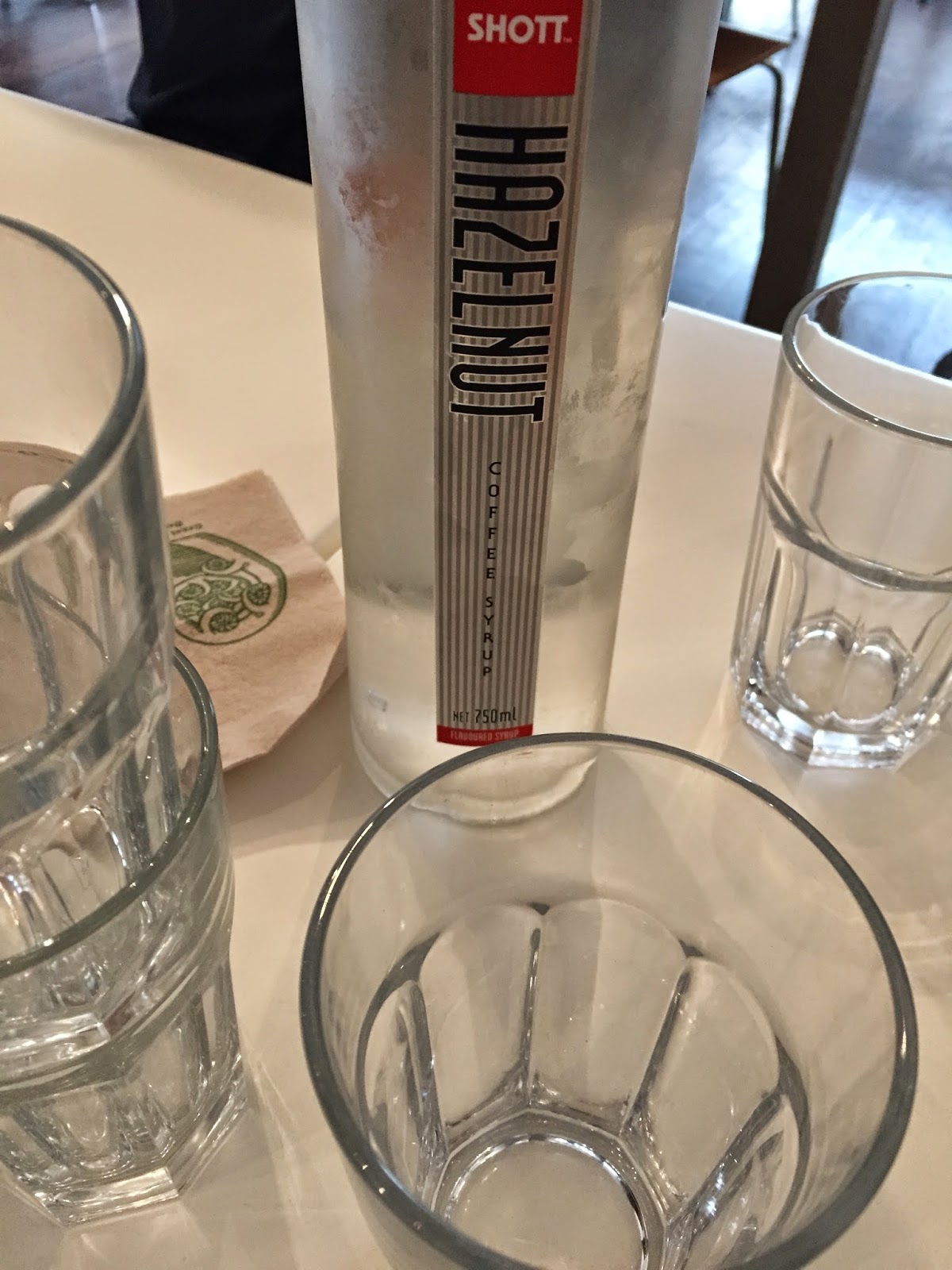 Often in cafes when you ask for water they give you (or show where there is) a repurposed glass bottle of some sort, and provide you with glasses. This was a repurposed vodka bottle, I think. This is such a great way to reduce waste. New Zealand wins once again.